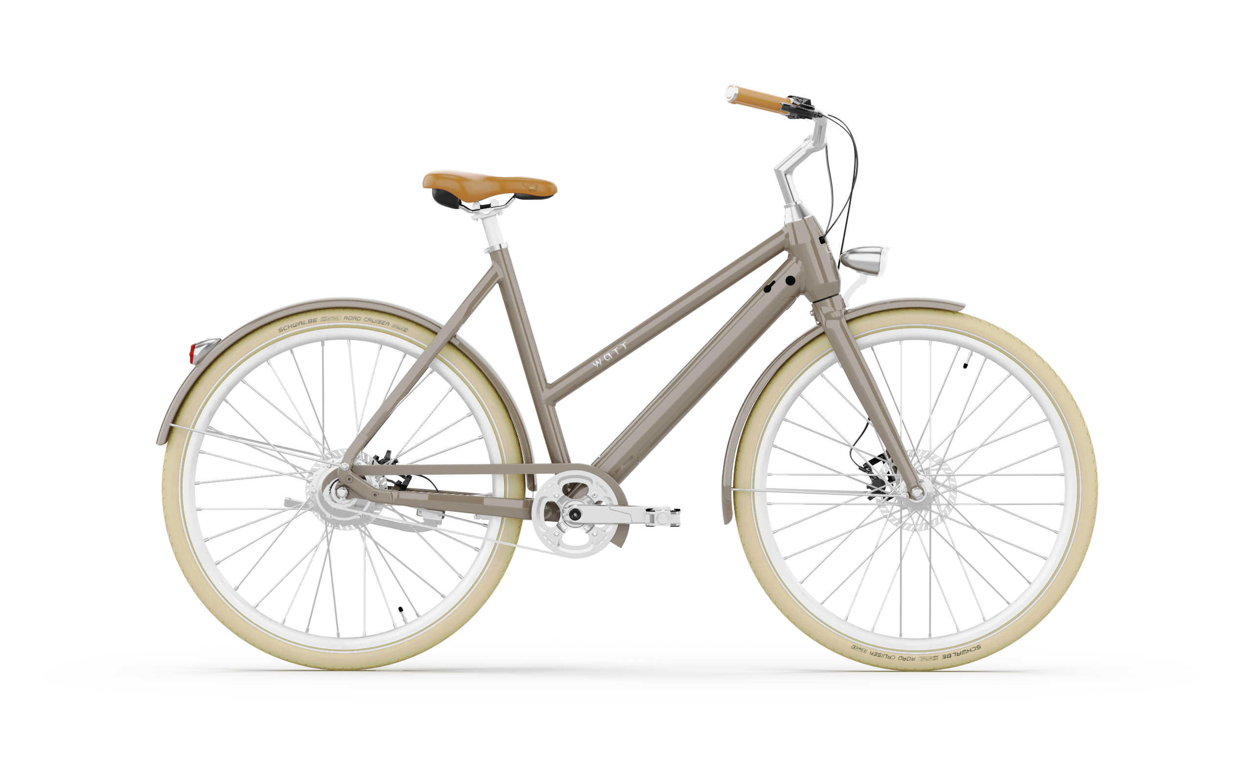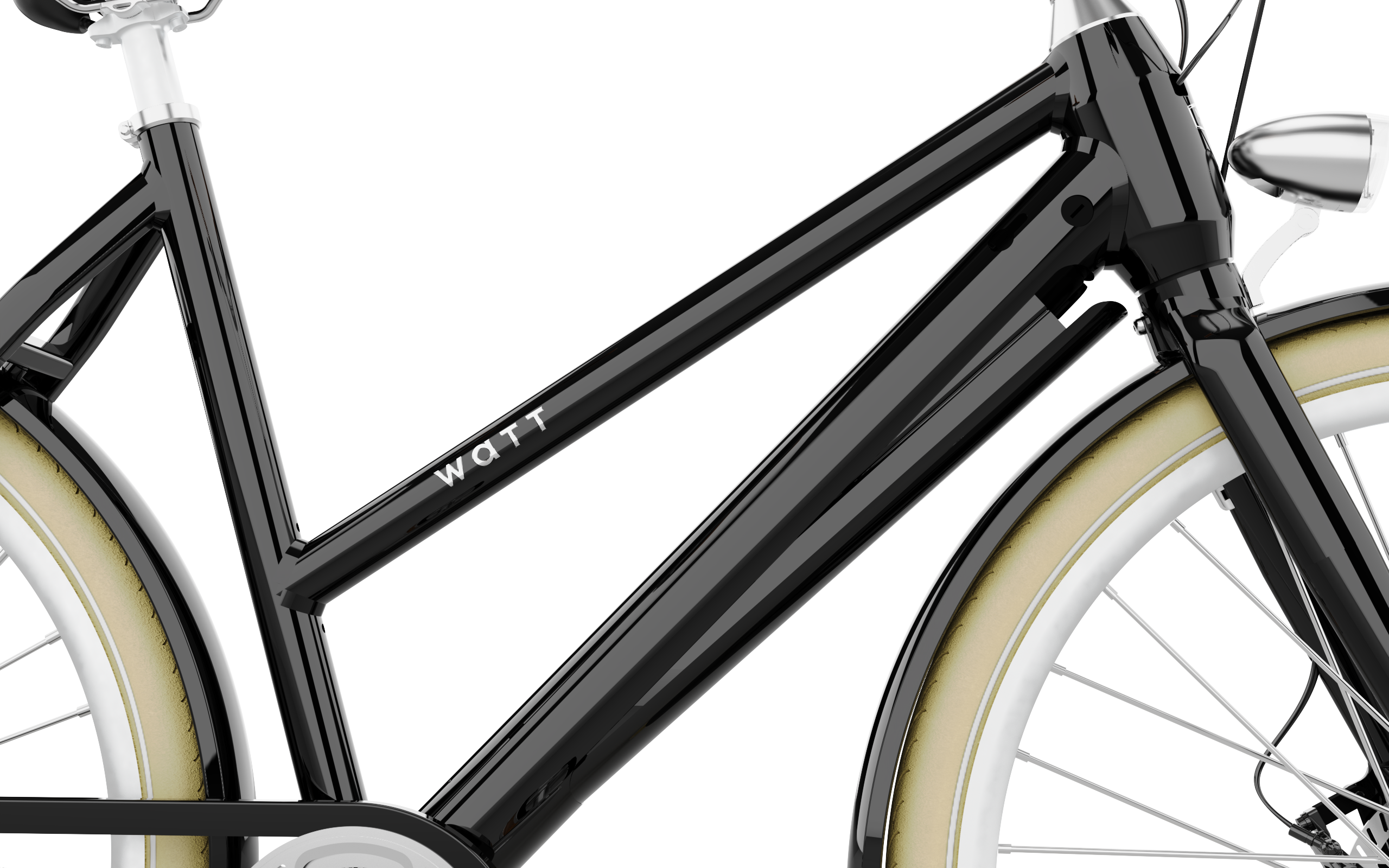 All WATT bicycles are now equipped with a removable battery. You can unlock the removable battery in an instant using the integrated battery lock. Very convenient if you live on the third floor. The battery has a capacity of 360Wh and 10.5Ah. Charging can be done at home and takes about three hours with a completely empty battery.